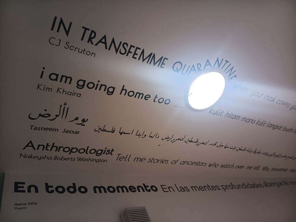 “In Transfemme Quarantine.” Word Wall / Pared Palabras, permanent installation, Walker’s Point Center for the Arts, Wisconsin.